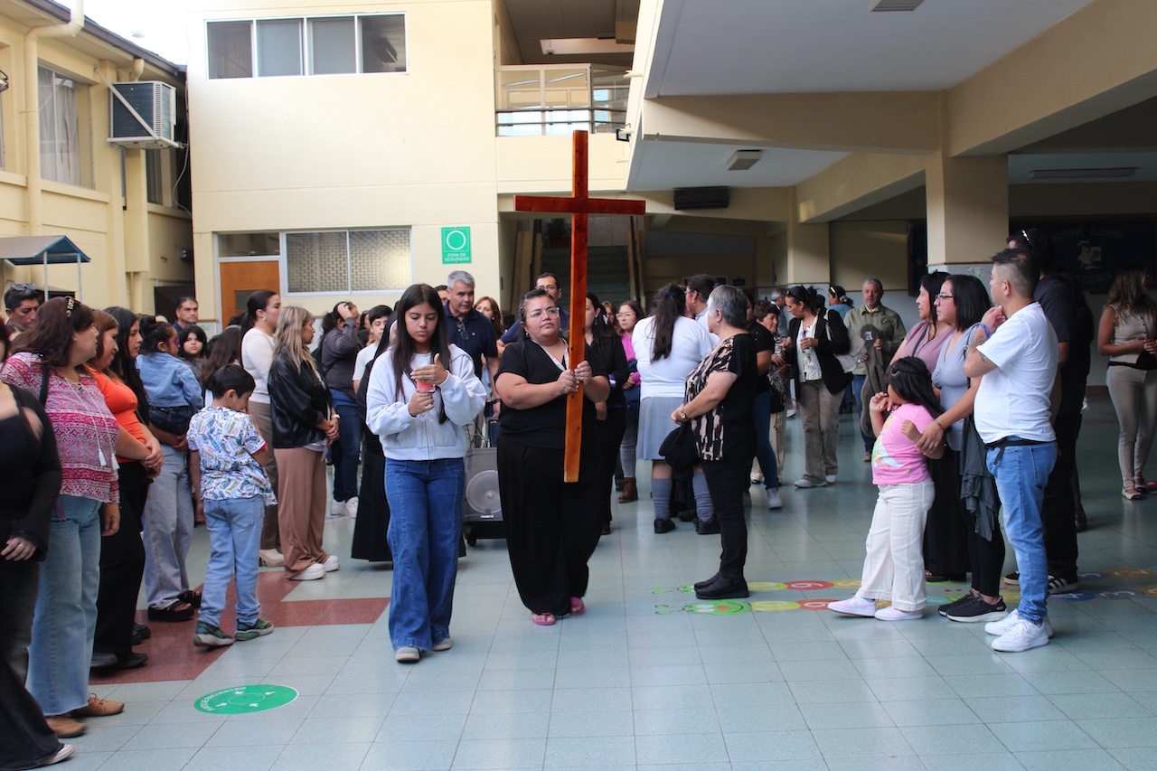 La actividad central fue un Vía Crucis desarrollado en las dependencias del Liceo, convocando a padres, apoderados, docentes y estudiantes, fortaleciendo el sentido de comunidad y fe compartida.